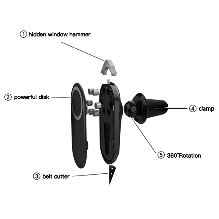 3-in-1 డిజైన్ ఈ అనుబంధాన్ని సాధారణ హోల్డర్ నుండి సెకన్లలో అత్యవసర సాధనంగా మారుస్తుంది. దాచిన విండో సుత్తి వివేకం ఇంకా ప్రభావవంతంగా ఉంటుంది మరియు పదునైన, తుప్పు నిరోధక బెల్ట్ కట్టర్ అత్యవసర సమయంలో సీటు బెల్ట్లను తక్షణమే కత్తిరించడానికి ఖచ్చితమైన మిశ్రమాన్ని ఉపయోగిస్తుంది.