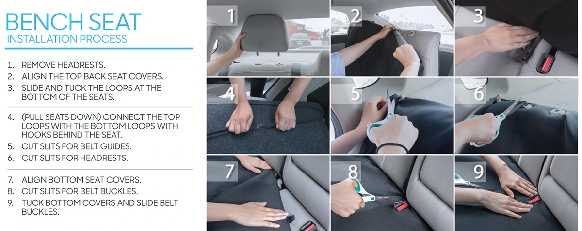 90%+ కవరేజ్: సర్దుబాటు/తొలగించగల హెడ్రెస్ట్లతో చాలా కార్లు, ట్రక్కులు, వ్యాన్లు మరియు SUVలకు సరిపోతుంది.