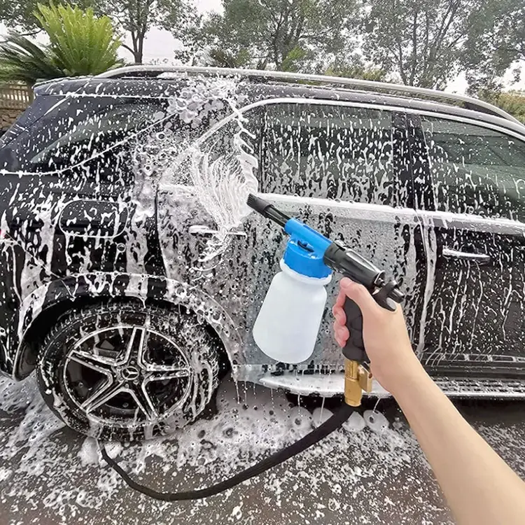 టాప్ నాబ్తో స్ప్రే బలాన్ని సర్దుబాటు చేయండి. శీఘ్ర-విడుదల బయోనెట్ ఒక సెకనులో వాటర్ గన్ నుండి ఫోమ్ డబ్బాను పాప్ చేయడానికి మిమ్మల్ని అనుమతిస్తుంది మరియు అధిక-పీడన కడిగి ఏ సమయంలోనైనా నురుగును తొలగిస్తుంది.