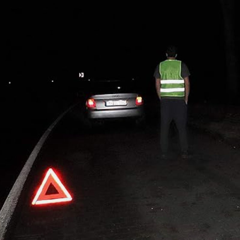 ● 360° ఓమ్నిడైరెక్షనల్ విజిబిలిటీ:ప్రీమియం రిఫ్లెక్టివ్ స్ట్రిప్స్ సూర్యుడు లేదా తక్కువ వెలుతురులో బలమైన మెరుపును అందిస్తాయి, ఆటో ఆఫ్టర్మార్కెట్ రోడ్ రెస్క్యూ టీమ్లకు భద్రతను అందిస్తాయి.